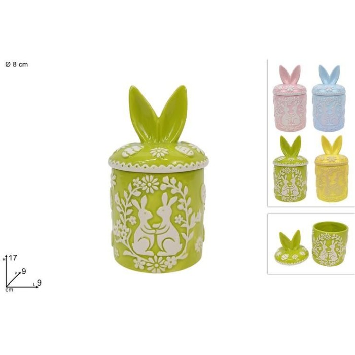 BARATTOLO 8CMC TAPPO ORECCHIE CONIGLIO CERAMICA 4COL